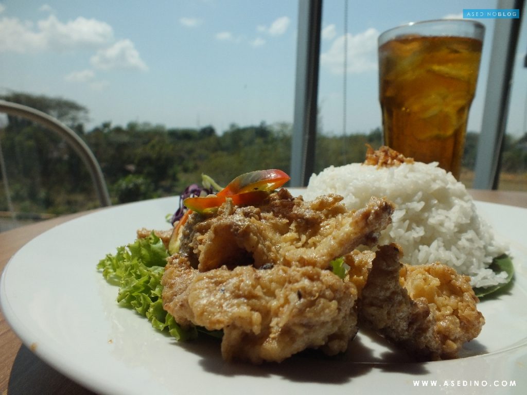 Nah yang ini paling populer dan favorit saya yaitu Nasi Ayam telur Asin. Nasi putih hangat disajikan dengan ayam goreng tepung berpadu dengan nikmatnya saus Telur Asin. Masing – masing menu harganya 28ribu aja loh termasuk es teh atau teh panas.